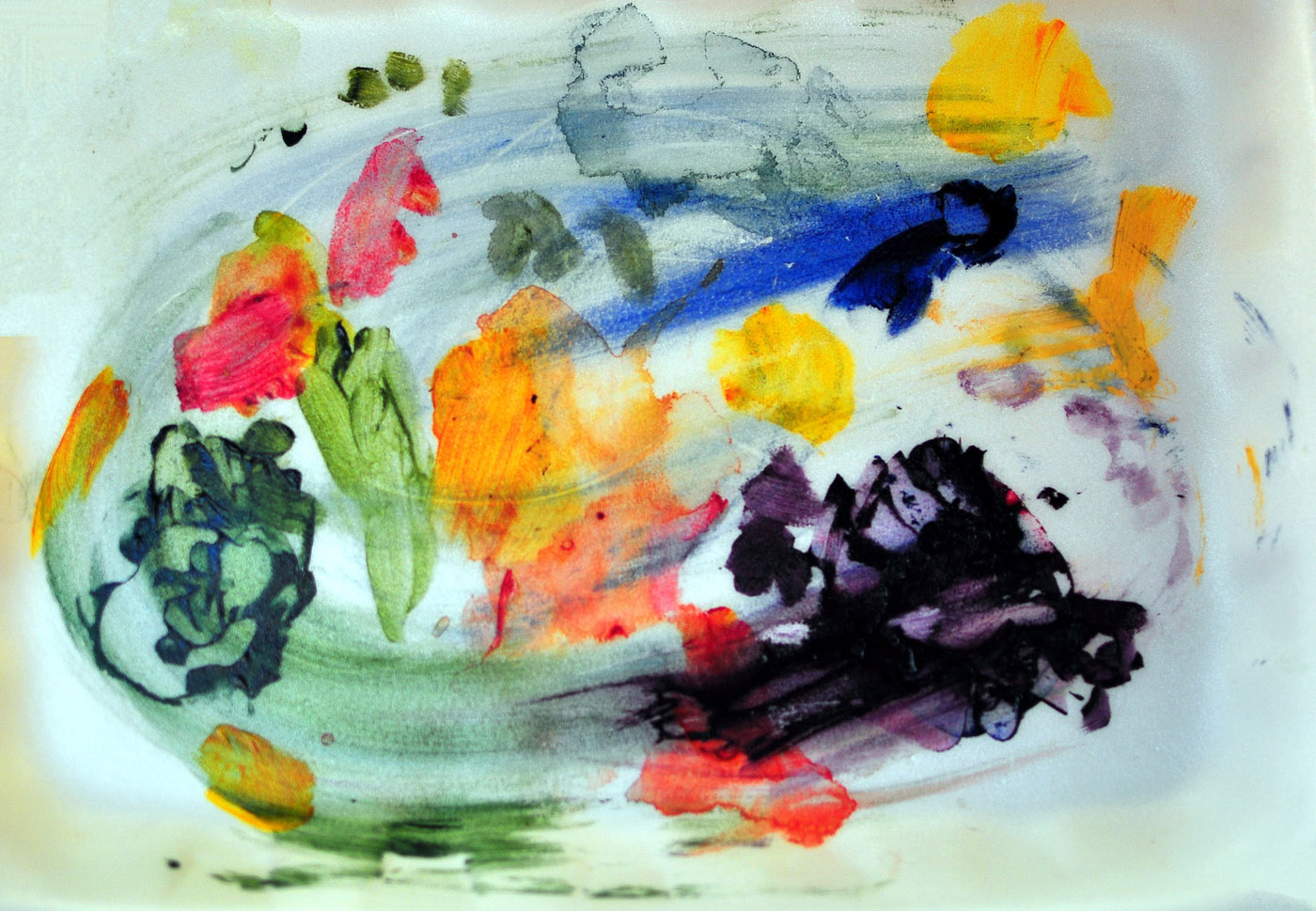 Thanks to all. I love your guesses. My artist friend Becky Knold made the correct guess on Facebook. It is my acrylic palette after I had wiped it off:-)