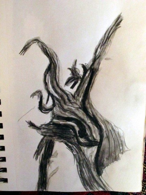 Jean entered into the fun and drew the same stump with water soluble graphite.