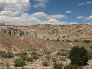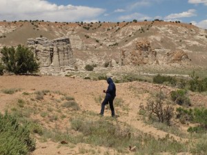The wind finally forced us to retreat to Bode’s Store in Abiquiu for a few supplies. Then we decided to visit Dar al Islam, a mosque out in the desert. The mosque itself was closed, but it sits on land called Plaza Blanca. The white cliffs of Plaza Blanco were popular subjects for Georgia O’Keefe. We have seen several of her paintings of these formations. We will return for some drawing/painting out there on a less windy day.