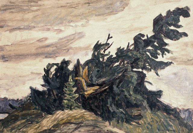 After lunch we walked down the street to the Robert Bateman Centre. He is one of the premiere wildlife artists in the world. We have been here many times and wanted to see his work again. Also today we saw a unique exhibit of his early work, much of which was not wildlife oriented and not in the dramatic style of present day. Here is an example we particularly liked:
