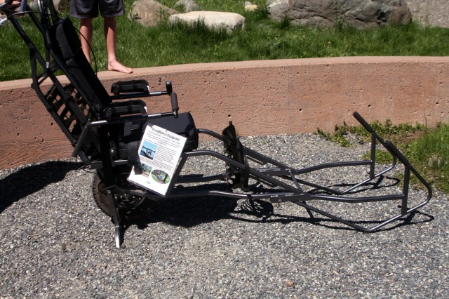 These single-wheeled chairs require two attendants, one in front and one in the rear. They provide forward momentum, but the chair is balanced so it takes the weight. The chairs allow people with physical limitations to view this magnificent scenery. That is a commitment to diversity!
