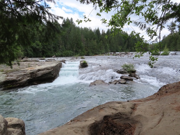 The falls are a series of cascades on the Puntledge River. A salmon ladder was blasted into the rock many decades ago. We sat by the ladder for our sketching.
