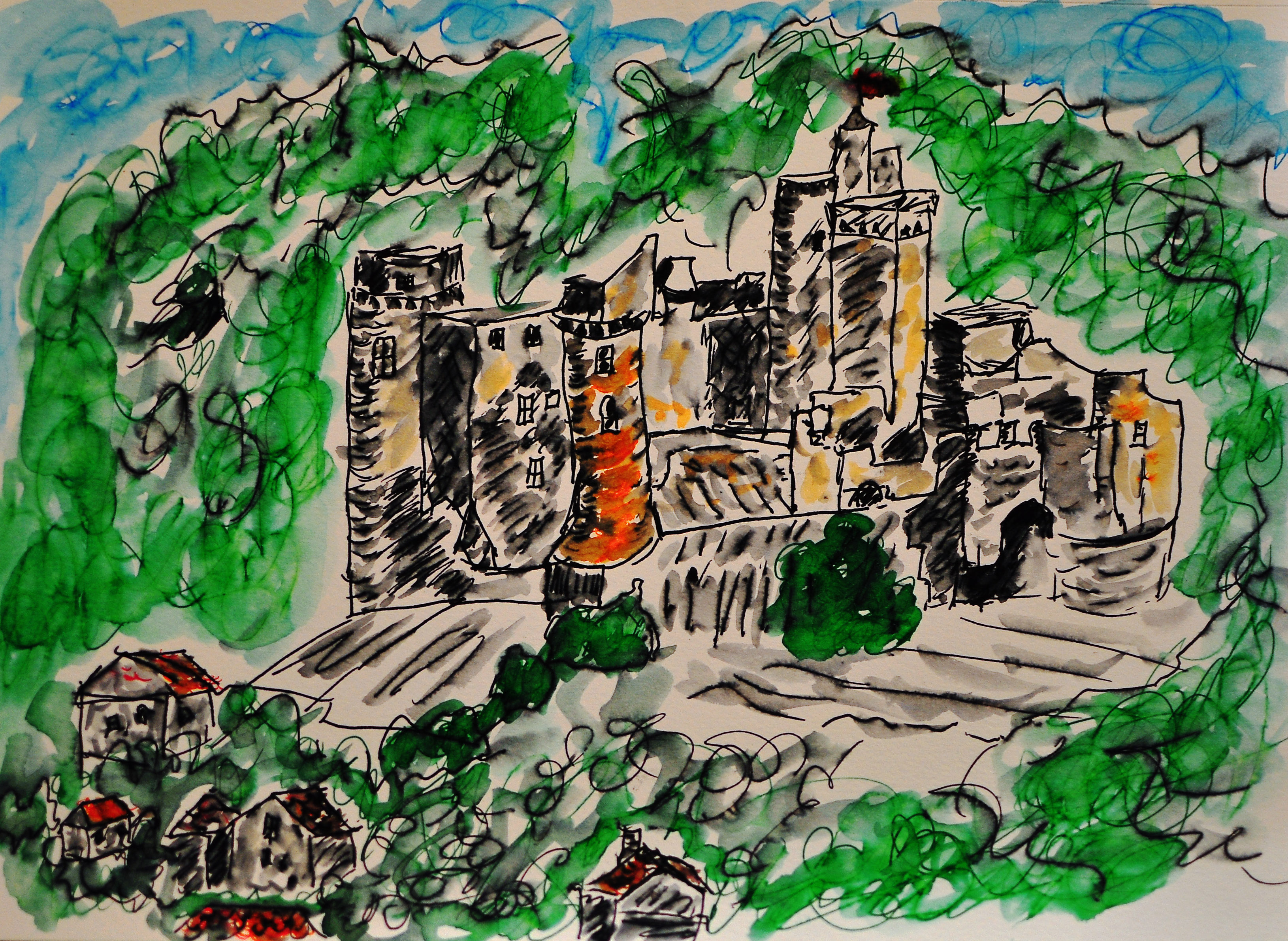 Chateau Bonaguil – Plein Air Ink Pens