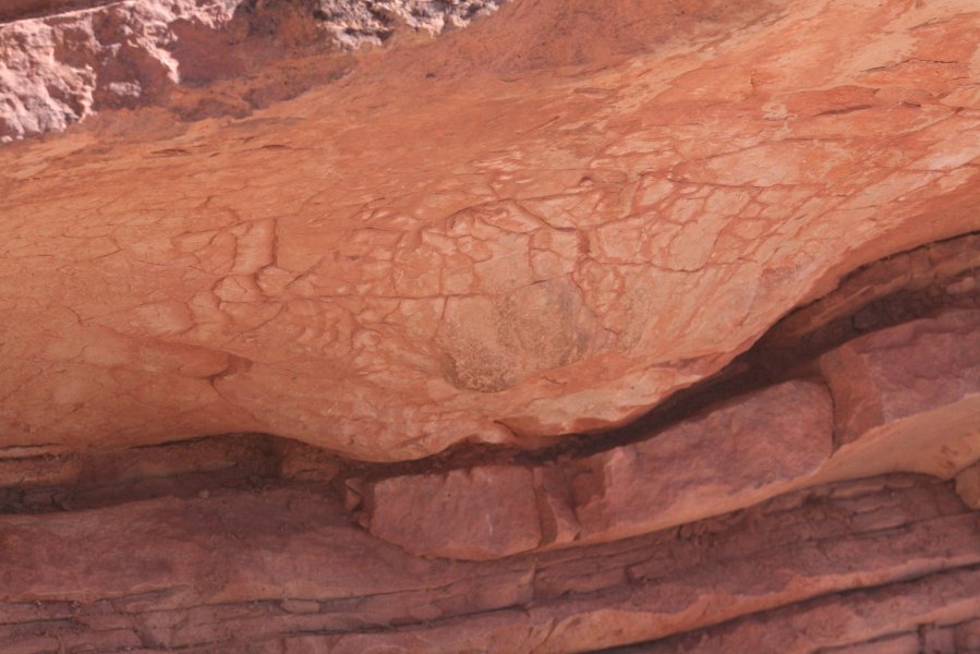 The bulge is the underside of a dinosaur footprint in soft sand.