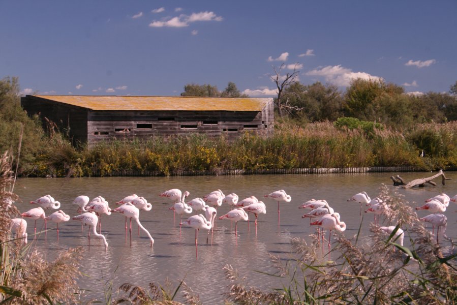 Flamingoes and Observation Blind