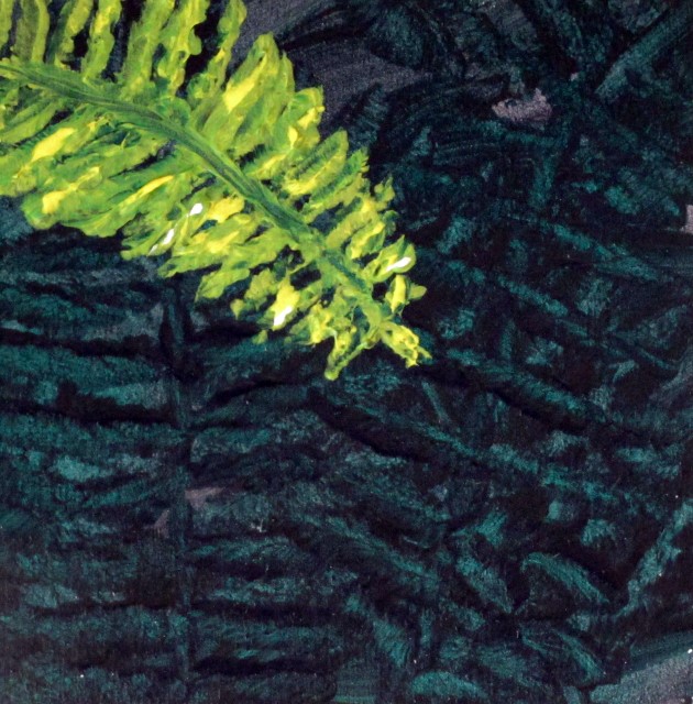 One fern catches the sunlight…acrylic painting.