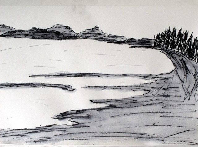 Pen and ink sketch of Miracle Beach
