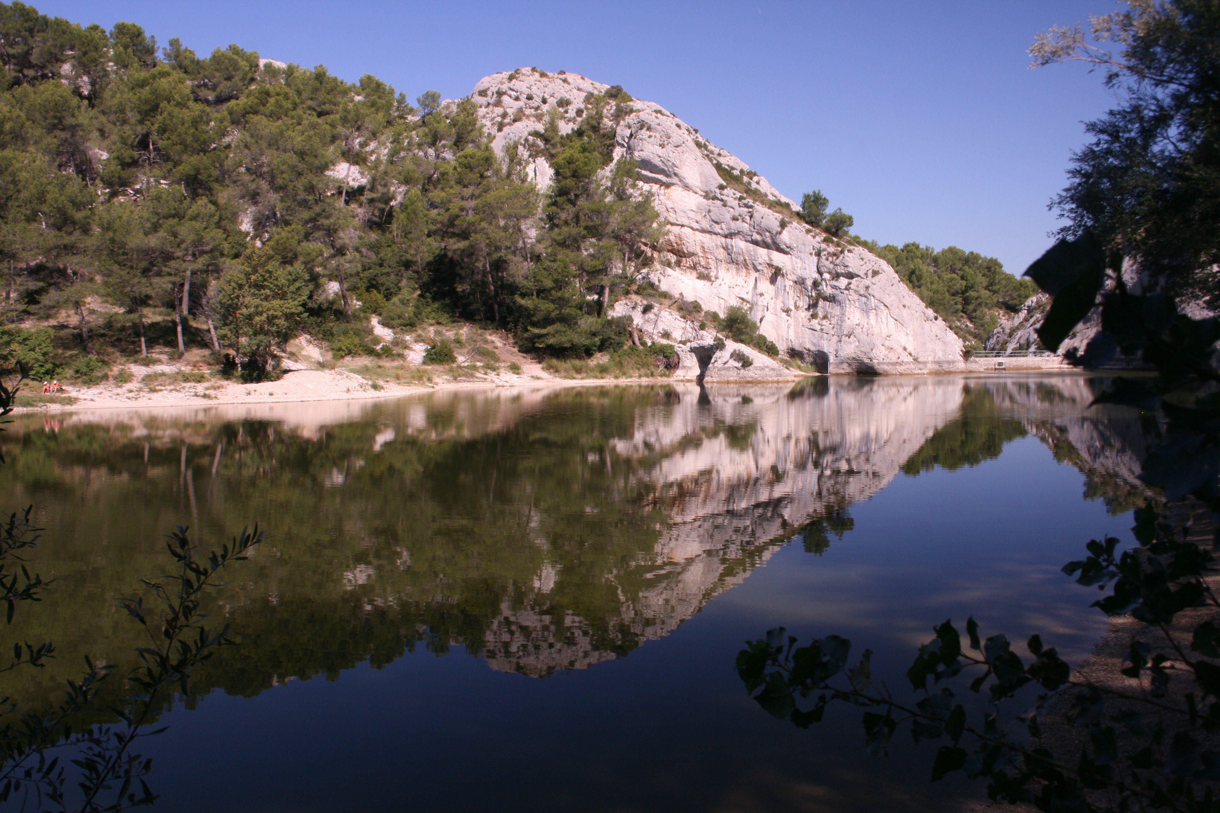 Lac des Peirou The dam is in the right upper vee of rocks at the end of the lake.