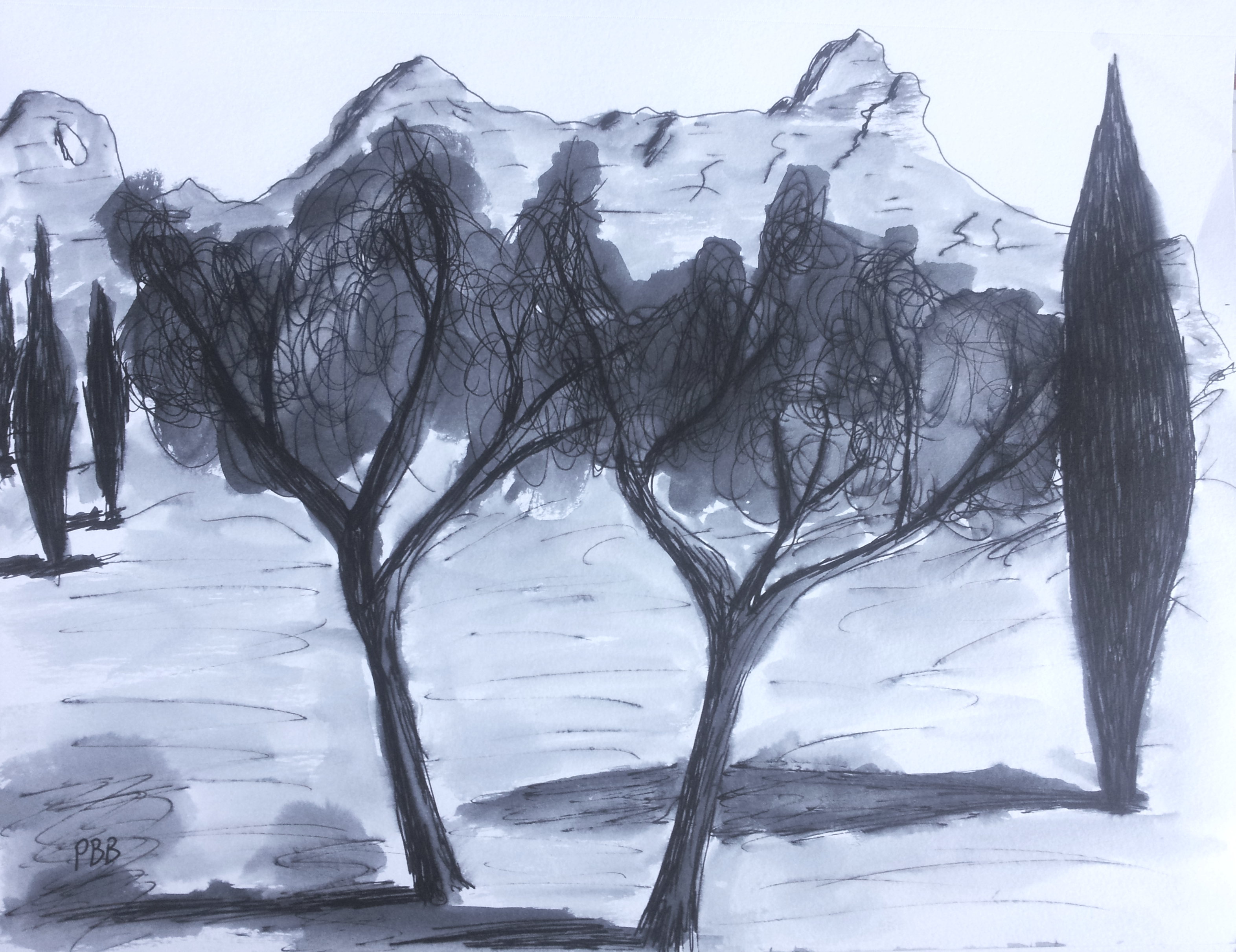 Les Alpilles Ink Sketch